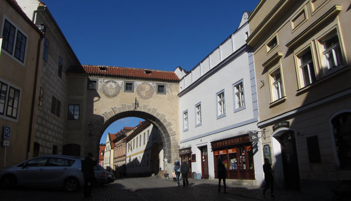 昨日到着して以来、ずっと雲がはりっぱなしだったチェスキークロムロフの空だったのだが、朝からチェコ名産のピルスナービールを飲みながらの朝食をすませ、レストランから出たら、すっかり青空になっていた。青空の下でのチェスキークロムロフの町は、さらにメルヘンチック度合いが上がってしまった。うむむ、やっぱりココは、男一人旅で来る町じゃないですわ。