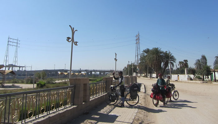 ずっと砂漠のど真ん中を走ってきたのだが、ようやくナイル川が近い地域にやってきた。砂漠道も相変わらず続くのだが、ナイル川沿いの道へ行くこともできる。今日朝には、ナイル川沿いの道へ続く分岐路が出現してきた。「砂漠道ばかりを走るのも、そろそろ飽きてきたから、ナイル川沿いに行ってみようか?」と、3人で申し合わせたように言葉が出た。