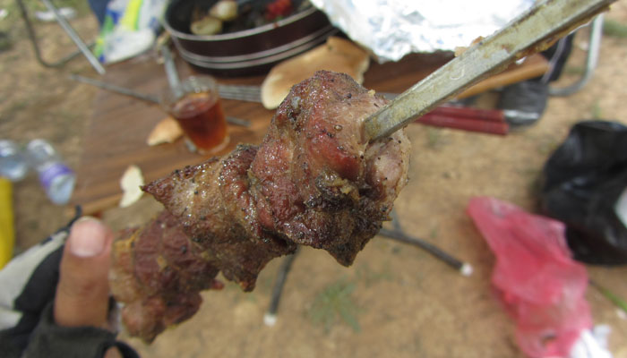 チャイでもおごってくれるのかな、と思いきや、なんと、BBQをやっているから、肉を食ってけというありがたいお誘い。それはぜひぜひ、とお言葉に甘え、美味しいお肉をいただくことに。