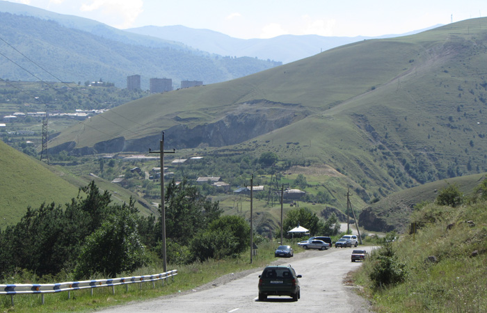 道脇の菜園で野菜や果物を作っているじいさんだった。パンやソーセージとともに、採れたてのきゅうりやラズベリーなどを出してくれまして。と、そして、コーラのボトルに入った透明なものも取り出してきた。明らかに入っているものはコーラじゃない。あ~、これは、と思ったら、案の定、蒸留酒チチャだった。いや、オイラはこれからまだまだ走らなきゃいけないから、酒を飲んで酔っ払っている場合じゃないんですよ、と言ったのだが、言葉が全然通じず、結局飲まされることに。いやぁ、ホント、グルジアといい、アルメニアといい、お酒が好きな人たちだな。朝っぱらから飲むっていうことに、全く抵抗がないこの国民性。