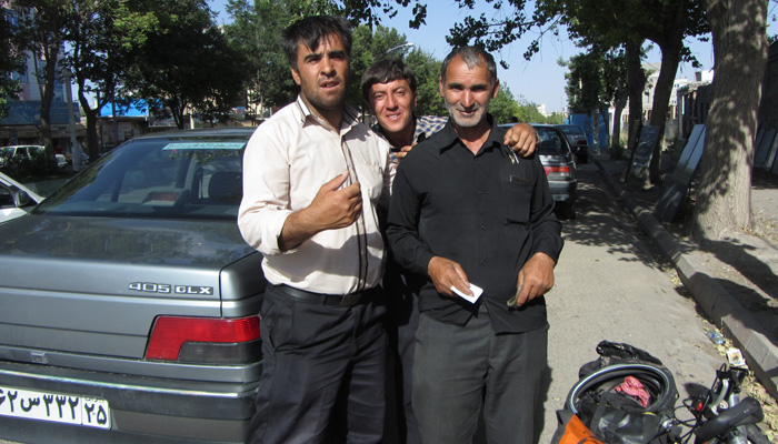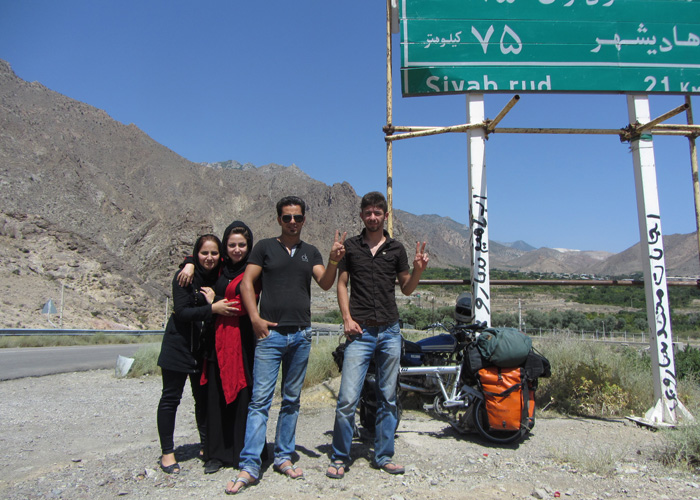 入国そうそう、厳しいことを言われ、ちょいと凹み気味だったのだが、イミグレを出たところで、車に乗った若者たちが声をかけてきた。「これからイランを走るのか!?がんばってね」と励ましの言葉。女の人も、結構テンション高く話しかけてくれる。イランは割と厳密なムスリムの国だから、女の人は距離をとってくると思ったのに・・・ちょっと戸惑い。