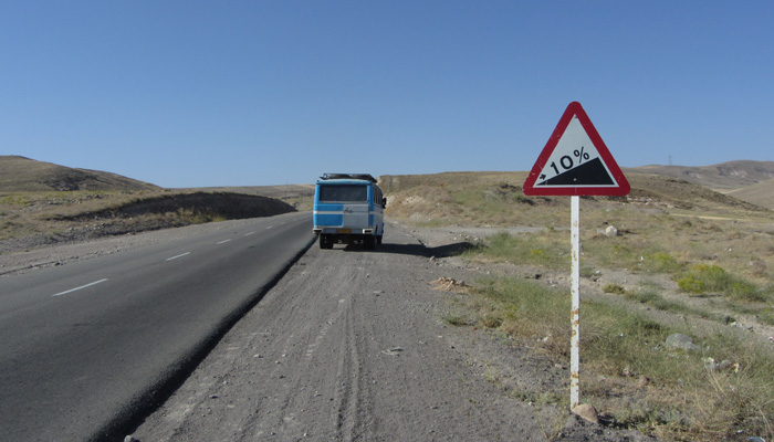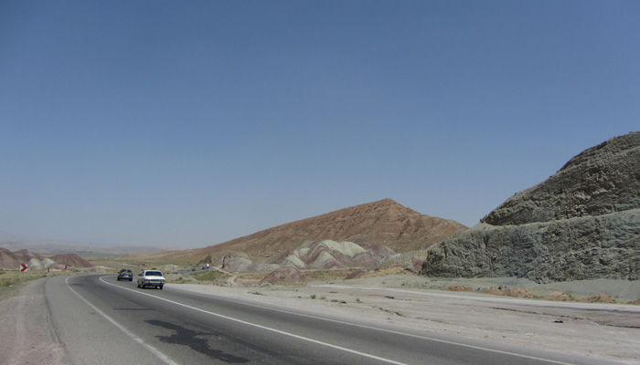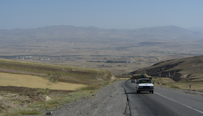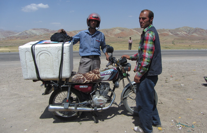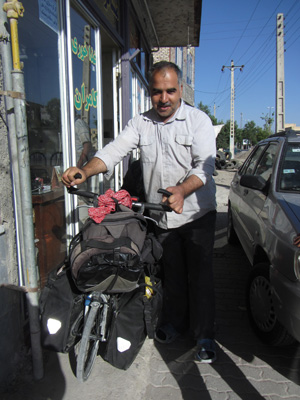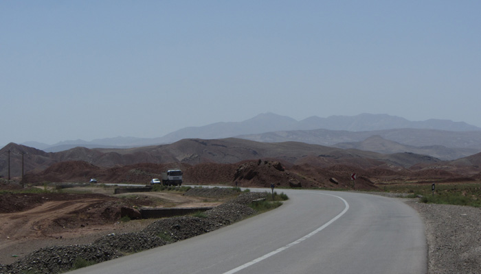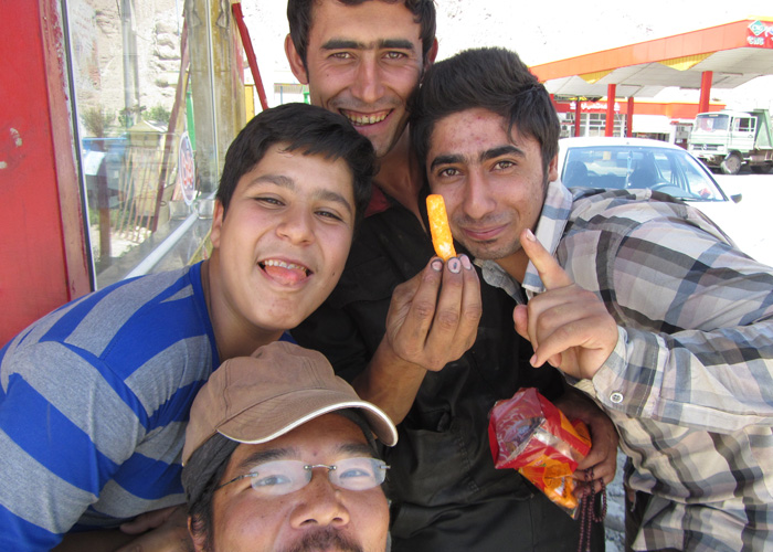 さて、走り始めたイラン道。道は昨日ほどのアップダウンはない。ふ~、よかった。走りやすいぞ、と、それなりに緩やかな登り道を登っていたら、道脇の工事現場のおじさんが声をかけてきた。聞くと、おじさんもチャリダーらしい。若い頃、イランを自転車で走り回ったとのこと。おお、イランの人も、自転車で旅とかしちゃうのか、と興味シンシンで話を聞く。