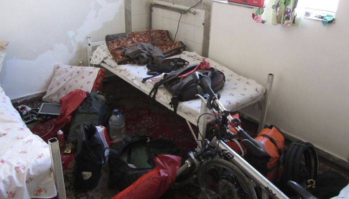 今日から本格的にイラン走りが始まる。ベッドやシャワーなど設備的には微妙だったけど、心の暖かいオーナーで居心地はよかった宿を出発。