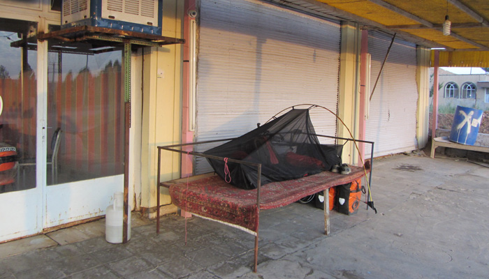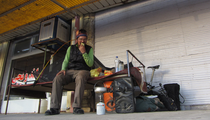 睡眠不足のまま朝を迎える。あ~、昨日は夜遅くまで店に訪れるイランの人達に絡まれ続け、全然眠れなかったよ、ここに泊まったのは失敗だったか?いや、でも、まぁ、楽しかったからいいか、なんて思いながら朝飯の準備。