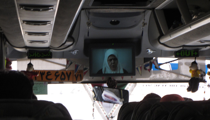 まぁ、乗ってしまえば快適なイランバス。席はゆったりだし、飯は出るし、映画も見れる。その上冷房も完備ってんだから、文句のつけようがない。イランがこんなに快適に旅できる国だなんて、思いもしなかったよ。なんで、こんな国が、旅訪問国としてマイナーなんだろうか?