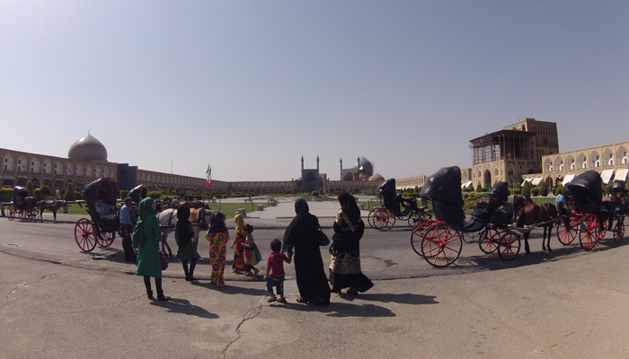 今日は、イスファハン観光。イスファハンの目玉と言えば、なんといっても、イマーム広場。でもねぇ、イスラム建築にそんなに心が動かないオイラとしては、まぁ、そんなに期待はしないで行ったんですよ。