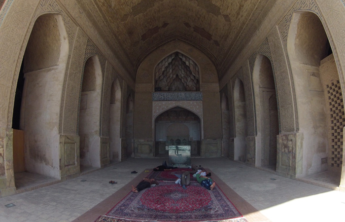 ・・・と、イマーム広場だけでも、十分な感動だったのだが、その後訪れたマスジャデ・ジャーメ(ジャーメ・モスク)にも、驚きと感動を与えられまして。特に、エイヴァーンの近くの小部屋にあったメフラーブの、繊細すぎるレリーフには、魅了されまくって、これを1時間くらいじっと見続けてしまった。