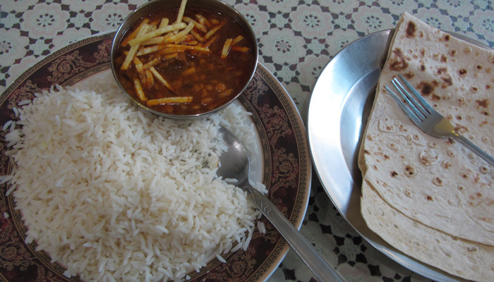さて、タジキスタン大使館には明日行くことにして、今日は戻ってきたテヘランの街をブラブラ散歩。で、適当な店に入って、イラン飯を食べて思ったのだが・・・イランでは、ご飯に薄焼きパンに、煮込み料理ってのが、定番。これって、インドのカレーっぽくないですか?と思ったんですわ。煮込み料理はカレーっぽくて、薄焼きパンはナンやチャパティに相当する。