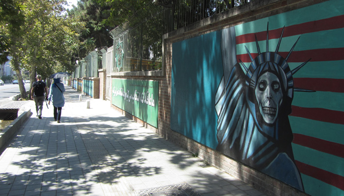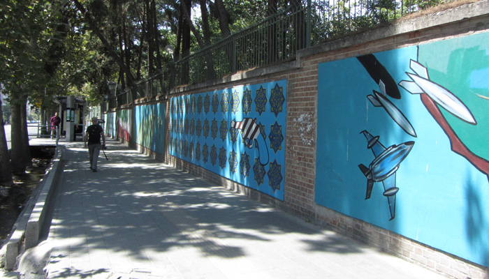 そして、観光でもしてみるか、ということで、旧アメリカ大使館跡地へ行ってみることに。イランとアメリカは今、仲が悪い。以前はアメリカ大使館があったのだが、イラン革命でごたごたがあって、アメリカ大使館が閉鎖され、今はその跡地だけがあるという状況らしいのだ。