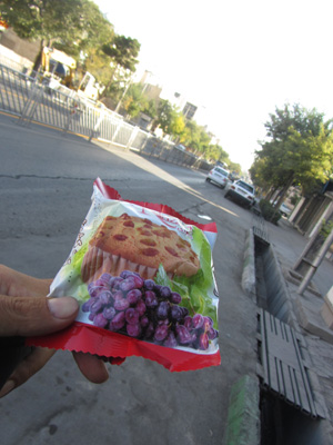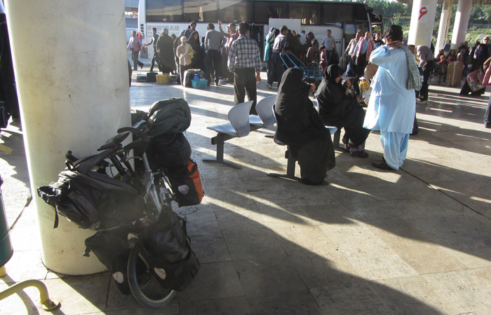 朝、予定通りにマシュハドに到着。バスターミナルからお目当ての宿までチャリに乗って行くべく、相棒を走りモードにセッティングしていたら、「これでも食べな」と、一人のおじさんがパンケーキをくれた。いやはや、イランはどこに行っても、人が優しいな。