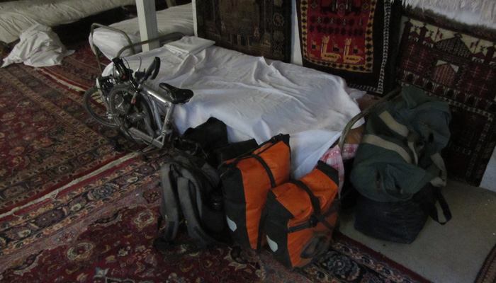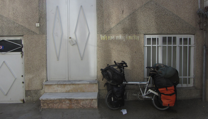 さて、お目当ての宿の場所も簡単に分かり、チェックイン。さて、実は、エジプトで異音がして以来、相棒の後輪が、頻繁に異音がするようになってまして。原因はネジが緩むことだということは分かっているので、その都度、ネジを締め直して直してはいるのだが、またすぐ緩む。グルジアで一応直してもらったのだが、十分ではなかった。これは中央アジアを走る前に、根本的に解決しておいたほうがいいな、と思って、マシュハドの自転車屋に持って行って直してもらうことに。