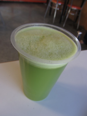 その帰り、ジュース屋があったので、みんなで寄ってみた。野菜のビタミン成分とかが書いてあってなかなか健康志向。ここで、青植物のジュースを飲んでみたのだが・・・ちょっと前に流行った青汁の味だった。いやはや、不味い。まぁ、めっちゃ健康によさそうではあるけれども。