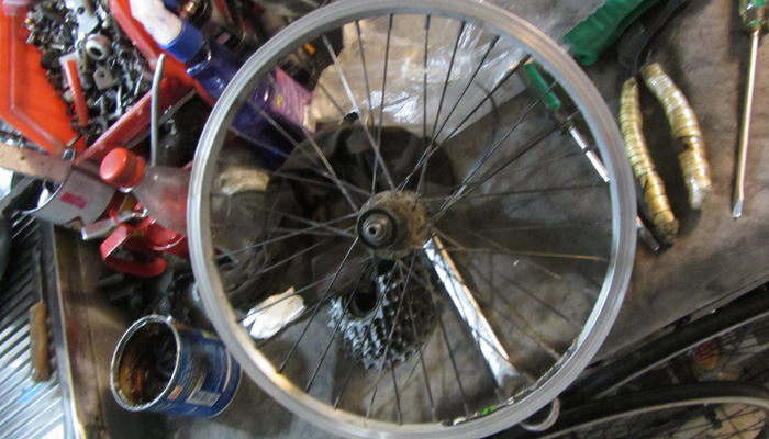 さて、その後、一応、明日までにやっておくよと自転車屋さんが言ってくれてたので、相棒を受け取りに、自転車屋に行ったところ・・・後輪が分解されたままだった。「忙しくってさ。明日また来て」とのこと。ああ、まぁ、どうせ、明日までは居ますけど・・・明日、ホントにできるんでしょうね?