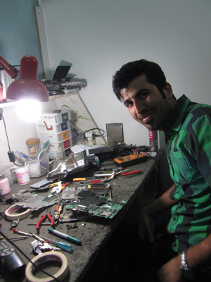 これは困った。この先の中央アジアでは、パソコン修理なんて出来ないだろうから、やるのならここでやっておかねば、と、宿のおじさんに相談して、パソコン製品を扱っているマシュハドの秋葉原的なところに連れて行ってもらうことに。で、そこで、見つけた修理屋さんにお願いしたところ、バラバラにしはじめまして。ファンを交換するには、全部をバラバラにしないとダメとのこと。で、バラバラにしてファンを取り外すことは成功したのだが、マシュハドには、このファンの代用になるファンは売ってないことが判明。結局、ファンが壊れた状態のまま、また元に戻すことになったのだが、戻したら、今度は電源が入らない、なんてことが起こりまして。なんとか、戻したものの、非常に不安定。今度はOSすら、まともに立ち上がらなくなることが発生する状態に。分解してくれたお兄さんは、直せなかったことを申し訳なく思って、めっちゃ時間をかけてくれたのに、お金は受け取れないと。