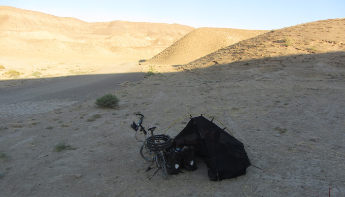 さて、今日は国境までは辿り着けず、山の中で日が暮れてきたので、道脇でテント泊。ええ、今日中に国境まで辿り着かないのは計算済み。明日国境に辿り着いてもう一泊イランに泊まった後、明後日からトルクメニスタンなんですわ。ふふふ、その辺も計算して、トルクメニスタンのビザは明後日から5日間有効にしてあるのだ。まぁ、これは、あくまで、この先も順調に旅が進むという前提にたっての話なのだが・・・
