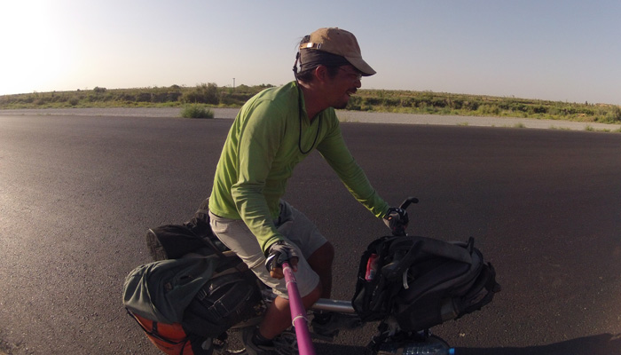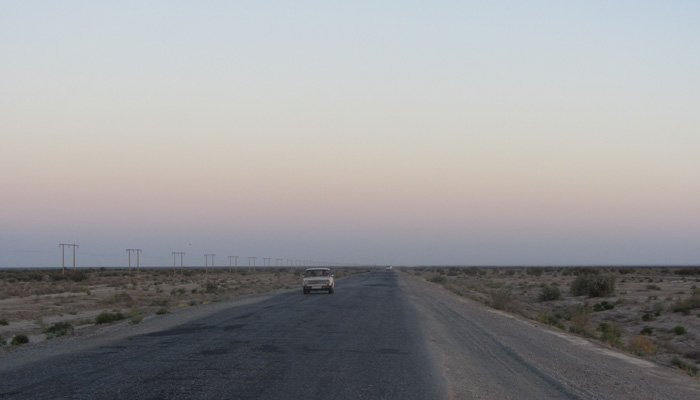 ということで、まだ日がでない薄暗闇の中、走り始める。周囲には何もない。ただ道が一本だけ続いている。これでも幹線道路だ。トルクメニスタンは人口密度はめっちゃ低いようだ。