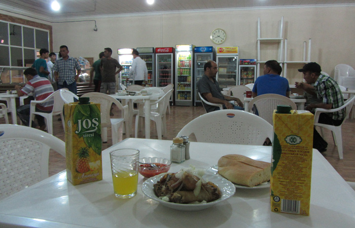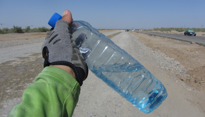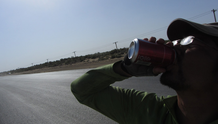 と、そんなトルクメニスタン道、住人の皆さんは、厳しさを知っているんでしょう。そんな中を自転車で走っているオイラに水やらジュースやらを車から差し入れしてくれるんですわ。ああ、ホントありがたい。渡されたばかりのコーラは、キンキンに冷えている。この世のものとは思えないくらい美味い。