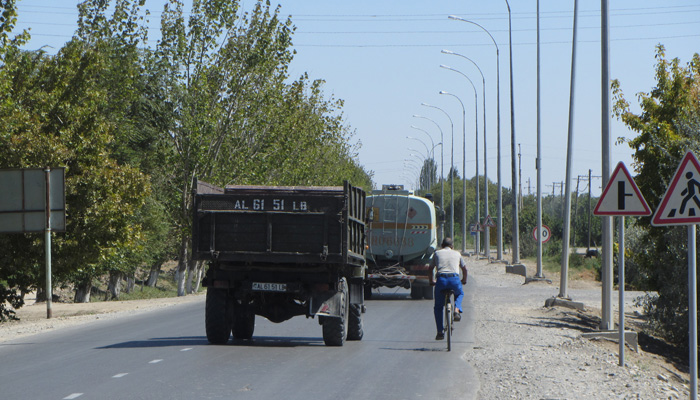 さて、オイラが通るコースの中では最大の街、トルクメナバットに到着。街中で見つけたレストランで、中央アジアのうどん、ラグマンを食べる。なるほど、これは美味い。いやぁ、マントゥといいラグマンといい、アジア飯が、郷愁をそそる。ようやくアジアに帰ってきたなぁ、と実感ですわ。