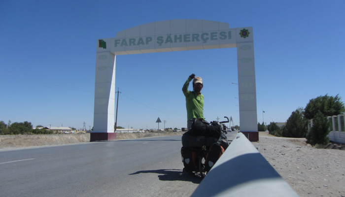 トルクマナバットを抜け、しばらく走り続ける。ファラップというところが、国境の町と聞いていたので、そのファラップの文字が書かれた門に辿り着いた時、やった~、走り切ったぜ、と喜んだのだが、実は国境は、ここから先、まだまだ行ったところにあった。しばらく走り、ようやく国境のイミグレへ。やった~、今度こそホントに走り切ったぞ~。とりあえず、手前でトルクメニスタンのお金を次のウズベキスタンのお金に両替。結局トルクメニスタンでは、宿は一回も泊まらず、飯を食うことにしかお金を使わなかったため、全然お金を使わなかった。そのため大量の余った金を両替したウズベキスタンのお金がものすごい束に・・・っていや、これはウズベキのインフレのためでもある。ちょっとした金額でも、ウズベキスタンでは、ものすごい札束になってしまうのだ。