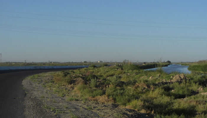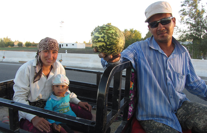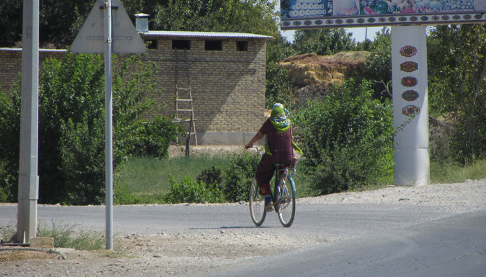 さて、近くにテントをはって野宿させてもらおうと思ったのだが、ウズベキスタンに入った途端に、民家が続くようになってしまった。トルクメニスタンみたいに広大に広がる空き地に勝手にテントを張るワケにはいかないようだ。ということで、テントを張っていいですか?と聞いたのだが、どうやら、外国人を勝手に泊めるとダメみたいで、「別の所で」とやんわり断られた。