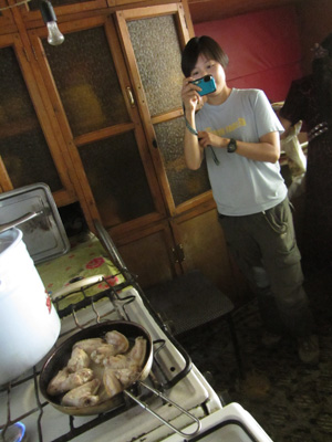 さて、別の宿に泊まっていたミユキちゃんが、こっちの宿に移ってきた。で・・・「ヨシさん、手羽先作ってください」と。