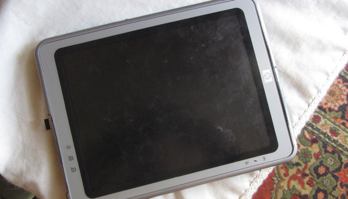 その点、このパソコンは、どこでも使える。いやぁ、この開放感。文字を打つ作業くらいなら、電池だけでそのまま3時間くらいは使える勢い。