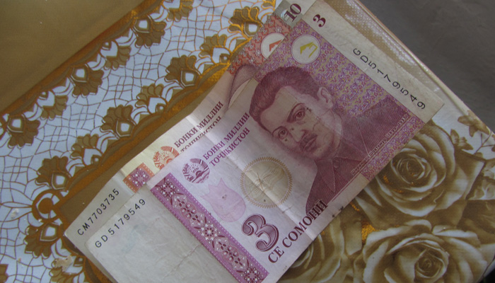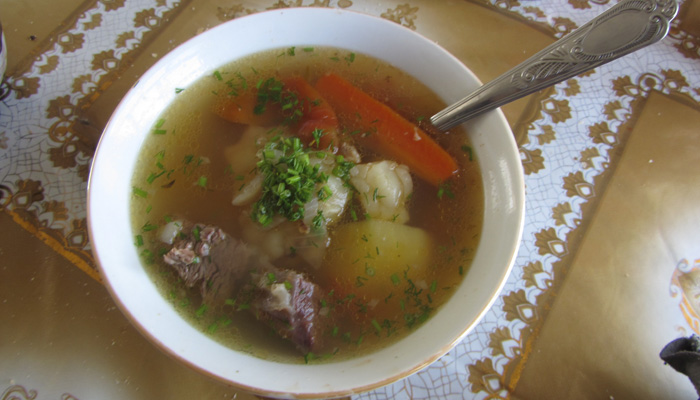 ウズベキスタンの出国、タジキスタンへの入国は、問題なく簡単にできた。まずは、国境付近の小さな村で昼飯。チョルパとパン。中央アジアは国が変わっても、食べているものはほとんど変わらない。