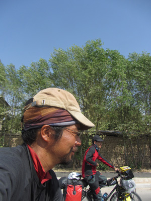さて、みんなとお別れして、出発。と、その前に、めっちゃ腹が減っている。とりあえず、朝飯をと、近くのパン屋に寄ったら、焼きたてのパンを一斤、オイラとホワンくん、それぞれに一斤づつプレゼントしてくれた。ええ、売りモノなのに・・・いいんですか?ありがたくいただきます。