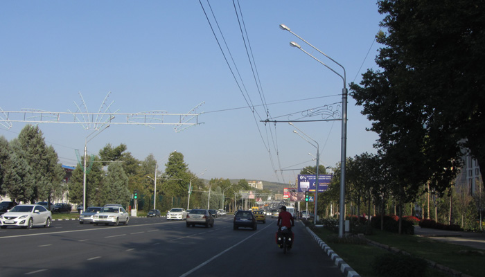その後、順調に走り、夕刻前に、無事目的地である、タジキスタンの首都ドゥシャンベに到着。が、ココから先が分からない。実は、ホワンくんがドゥシャンベでウォームシャワーのお宅にお世話になるよう連絡していて。オイラも一緒に泊まらせてもらうことになったんだけど、ホワンくんが、このお宅の場所が分からないっていうじゃないですか。うむむ、ホワンくんって意外と、詰めが甘いな・・・