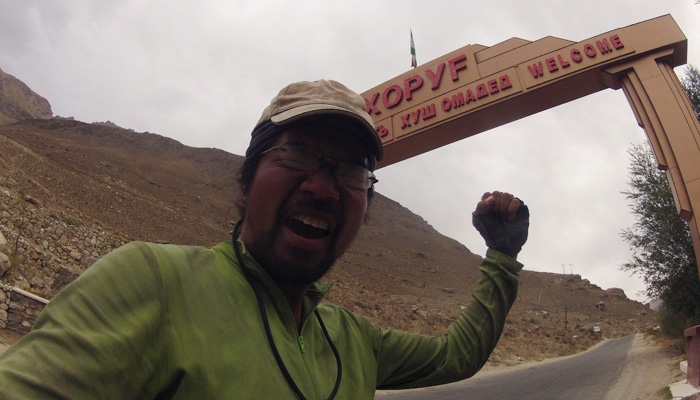 今日もいろんな人たちと出会いながら走り続け・・・お昼過ぎに、ようやくホーログに到着。とりあえず、目標にしてきた町だ。いやぁ、嬉しさのあまり、思わずガッツポーズ。ああ、ほんと、キツかったよ。もう、タジキスタン道走りは十分。ここから先はいらないんだけど・・・でも、これからが本番っていうんだから、一体本番はどんな道が待っているんだよ、まったく。