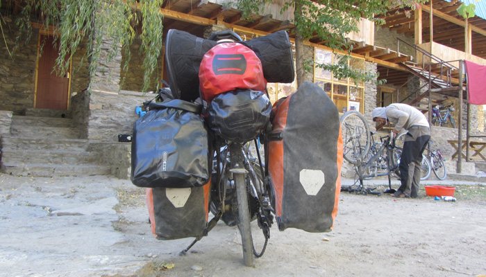 で、いろいろ吟味した結果、バックを2つ、置いていくことにした。いやぁ、モノを手放すのは、相当踏ん切りがいるもんですな。特に、長年使っていて、旅の苦楽を共にしてきた道具だったら、なおさら・・・悩みに悩み抜きましたよ。旅当初から使っているグレゴリーのバックは、そもそも、バック自体が重かったんです。バックパック旅をする時に便利かなということで、そのまま持っていたのだが、意外とバックパック旅をしない。しかも、バックパック旅にしても、グレゴリーバックはちと中途半端。あまりモノが入らない割に重いし・・・なにより、完全防水でないのがダメ。グレゴリーのバックの中に、オルトリーブの完全防水バックに入れたモノを入れるという二重構造で運用してきたので、実は、グレゴリーのバックはなくてもよかったのだ。ただ、出発時から使っているし、という情のみで使い続けていたこのバック。タジキスタン道では、少しでも軽くしたいという想いから、泣く泣くグレゴリーバックを宿のおばちゃんに寄付することに。