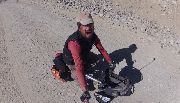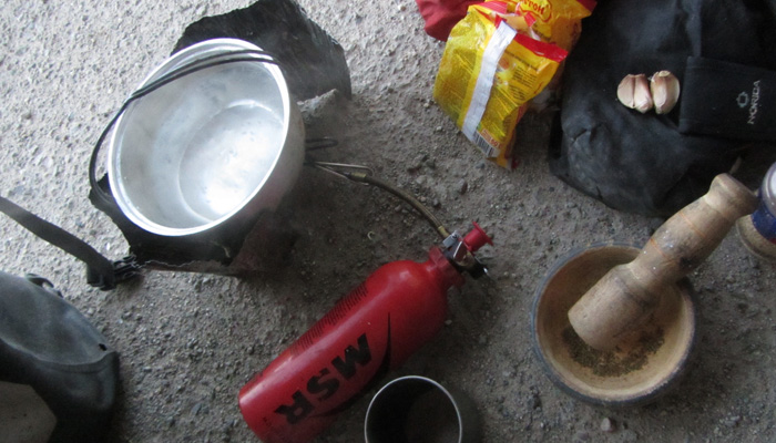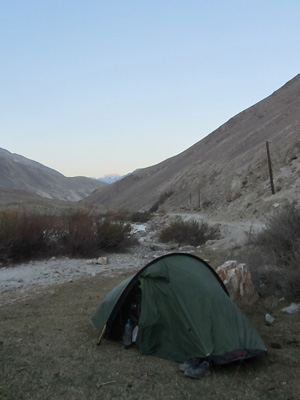 朝起きると寒い。猛烈に寒い。コップの外側についた水があっという間に氷りついてしまうほどの寒さだ。これまでは、ここまで寒さを感じることはなかったのに・・・標高を一気にあげたため、いきなり朝晩の寒さがこたえるゾーンに突入してしまった。昼間は、太陽がサンサンと照らすため、むしろ暑いくらいなのだが、太陽がなくなった夜から、一気に気温が下がる。テントで寝ていると、寝袋の中でも震えるほど、寒い。