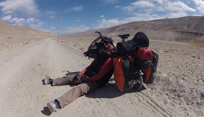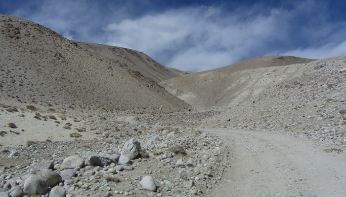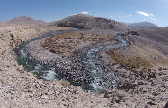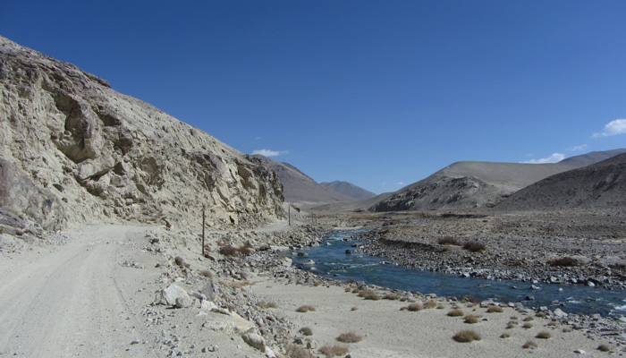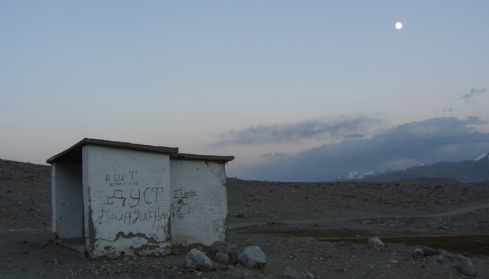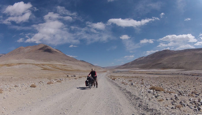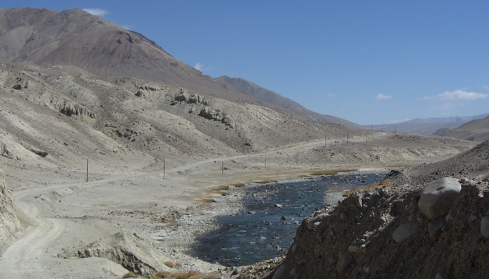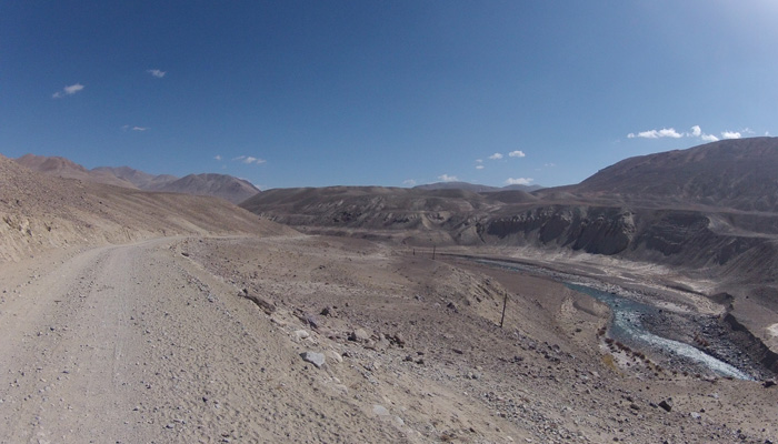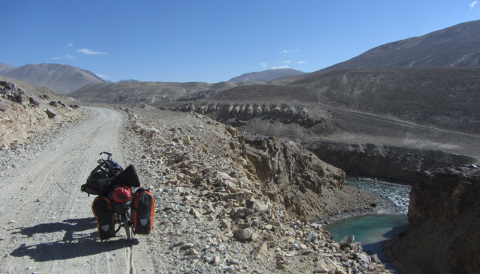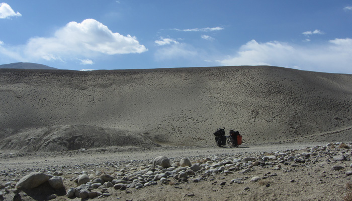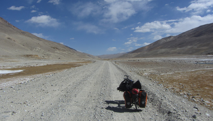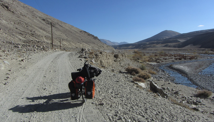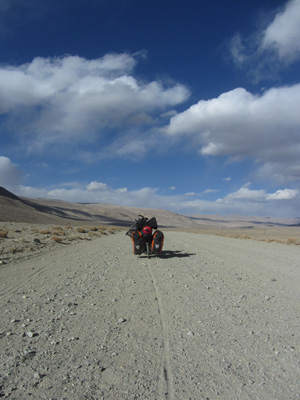 今日も、道は酷い道。パミール高原で、走りやすさを要求するのが間違っている。チャリダーの聖地っていわれているので、ここはさぞかし、走りが楽しい場所なんだろうと思っていたのだが、それは完全にオイラの勘違いだった。そう、ここは、走りを楽しむようなところじゃなかったのだ。じゃぁ、なぜチャリダーが集まるのかというと・・・チャリでないと来づらい場所だからだ。もちろん四駆とかで来ることはできるのだが、チャーターしなくちゃいけないので、高くつく。トラックとかにヒッチで乗せてもらうのもアリだが、車通りはほとんどないので、ヒッチさせてもらうトラックを見つけるのは結構大変。ということで、どこにでも行けちゃうチャリダーが相対的に多い地域というだけなのだ。チャリダー率が高いということで、いつしかチャリダーの聖地と呼ばれるようになり、そう呼ばれるから、オイラのように勘違いしてやってくるなんちゃってチャリダーも増えるというスパイラルに陥っているようなのだ。