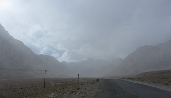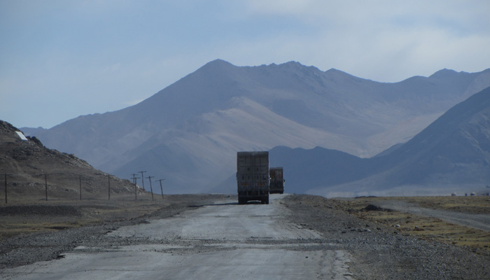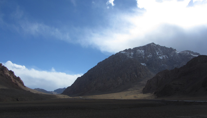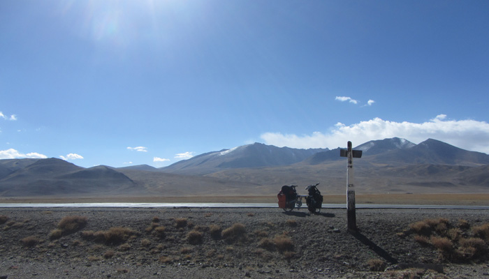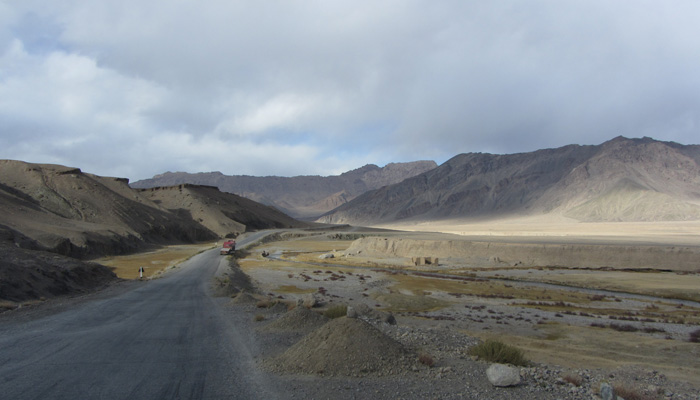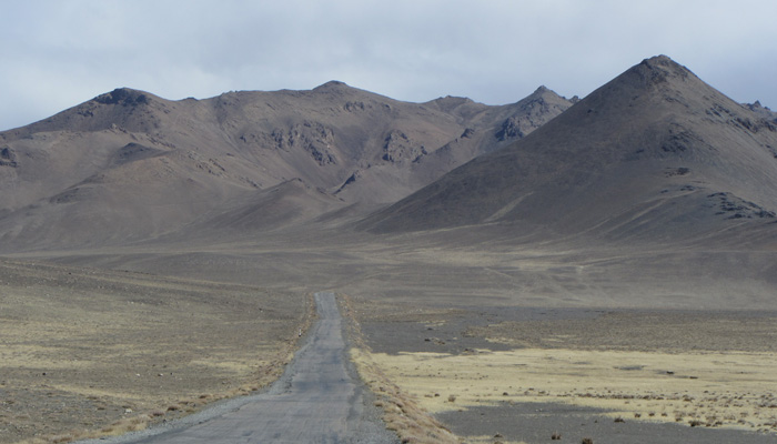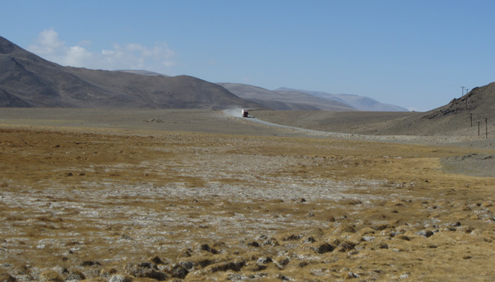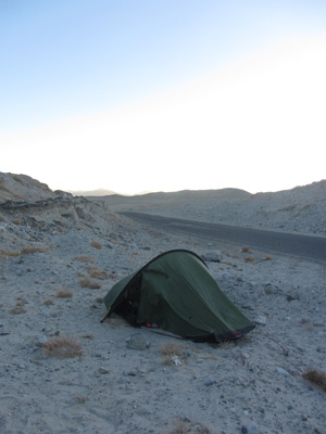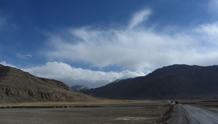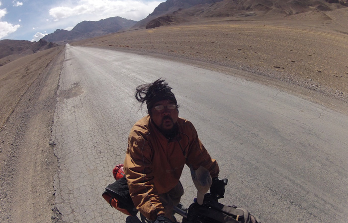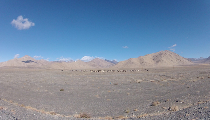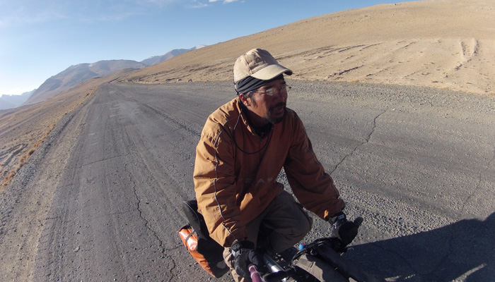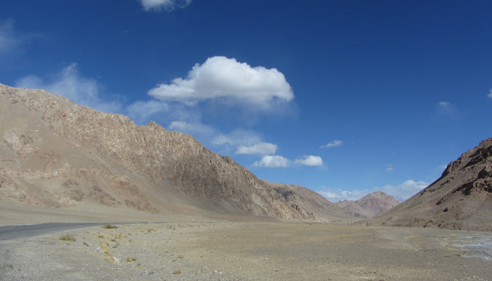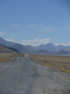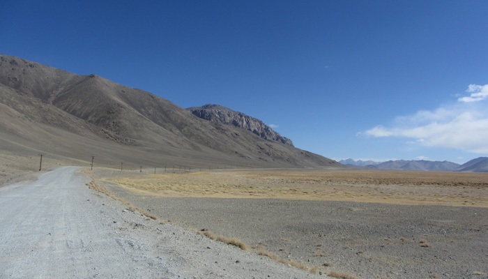 アスファルト道+追い風で、走り的には絶好調で、ぐんぐん進めるはずだったのだが・・・景色を楽しみ過ぎて、結局走ったのは、アベレージどおりの100kmちょい越え。まぁ、ワハンやパミールでは40km、50kmが当たり前だったから、100km進めるってのは、ここ最近にしてはめっちゃスゴイことではあるんだけれども。
