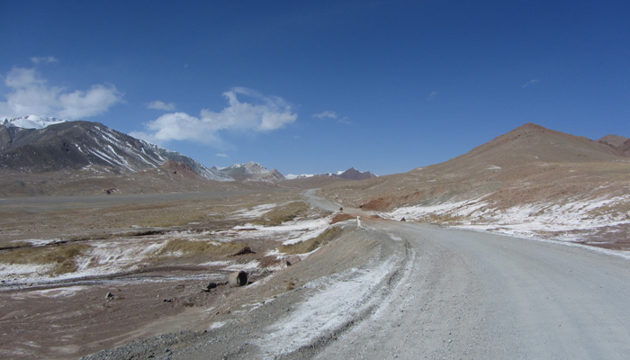 ここから先は、道周辺には雪がなくなり、しかも、舗装道になった。ふ~、パミール走り、今度こそ、ホントに終わったか・・・