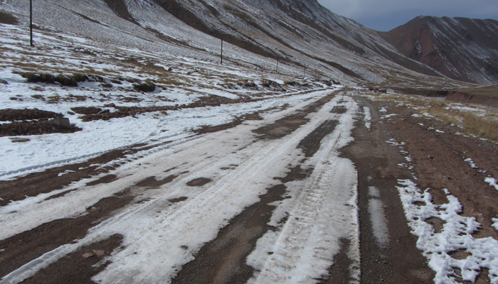 おそらく、雪を降らす雲は北のキルギス方面からやってくるのだろう。で、この峠で、ひと雪降らしてしまうのだ。その先はただ寒いだけの風がタジキスタンに吹き込む、ようになっているのだろう。