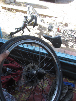 それはそうと、タイヤがなんとかココまでもってくれてよかったよ。まぁ、ギリギリだけどね。タイヤのゴムが薄くなってきてしまって、いろんなものが刺さりまくるようになってしまい、昨日からパンク続き。このタイヤはもう限界。う~む、ここから先はどうしよう・・・