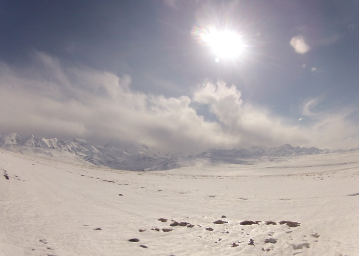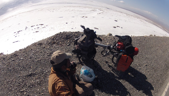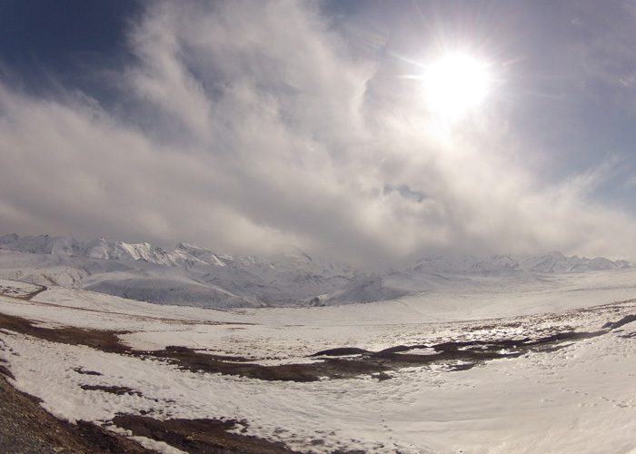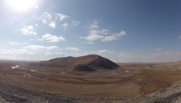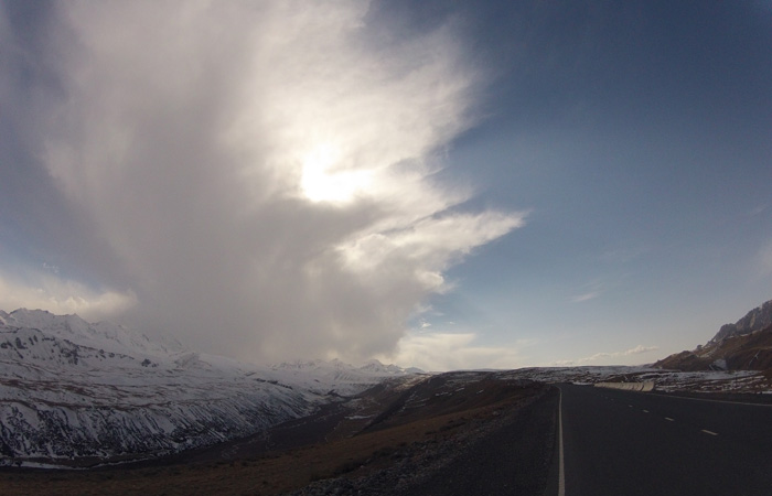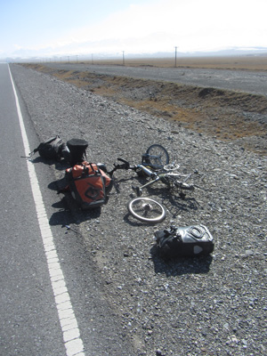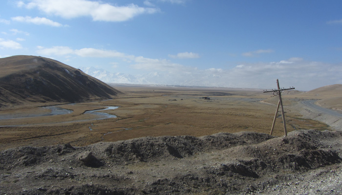 さて、ここから中国国境までは・・・もう一山あるんですわ、越えなきゃいけない峠が。いや、これまでの峠に比べれば、道は舗装されているし、そんなに勾配もキツくないので、普通に走れるのなら、大したことはなかったのだが・・・タイヤが限界にきてまして。途中で二度もパンク。これが、結構こたえた。というのも、寒いんですよ。寒い中のチューブ替えほどキツイものはない。おかげで、テンション下がりまくり。