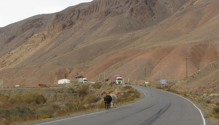 さて、この先は、キルギスを走り続けて北上するか、東へ進み中国へ行くか、という二つの選択肢がある。時間的に余裕があるのなら、タジキスタン以上に風光明媚だというキルギス道を走ってみたい気はあったのだが、先日走った道が雪まみれだったように、もう、冬が目の前まで迫ってきている。山道であるキルギスをこれから走るのはちとツライ。山道走りはタジキスタンで飽きるほどやってきたのだから、それよりも、タジキスタンで頑張った自分へのご褒美として、中国に入って、食い物三昧旅をしたほうがいいじゃん、って思いまして。