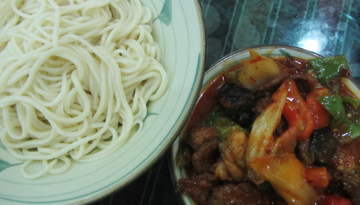 さて、ひと段落し、落ち着いた後、飯を食べに行くことに。うはは、ココは中国。飯天国の中国へやってきたのだ。食べたいモノが山のようにある。とりあえず、何を食べようか・・・さっき第一候補のマントゥは食べれたので・・・ラグマンを食べに行くことに。中国のラグマンは、中央アジアのラグマンとは一味違うとは聞いていたが・・・確かに、これはめっちゃ美味い。あ~、中国最高だぜ。美味しいモノ好きとしては、テンション上がりまくるよ。