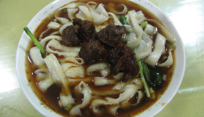 さて、腹いっぱいではあるのだが、昼食を食いに。今度は刀削麺に挑戦。麺を刀で削るというこの麺、ずっと前から食べたかったんですよ。で、お味は・・・まぁ、普通の麺でした。これは、刀で削るという行為が面白いのであって、だからといって味が特別なものではない。普通に美味しかったですけどね。