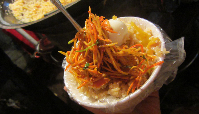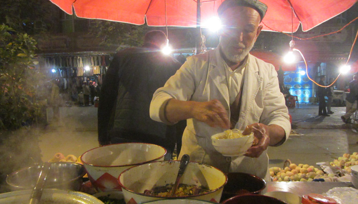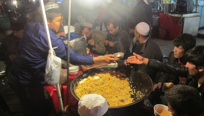 さて、夜は今まで行ったことがなかった夜市の屋台へ。皆さん集って食べていて、グルグル巡るだけで面白い。ココではポロフとラグメンを食べてみた。美味い。