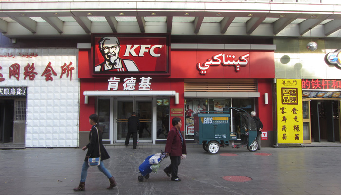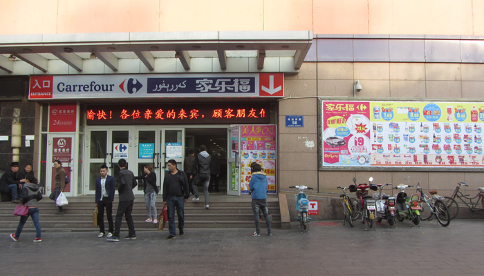 そんなこんなことがありながら、ひと段落した後、街へ繰り出す。ウルムチは都会だ。ケンタッキーとかカルフールまである。それぞれ、漢字で当て字してあるのが面白い。ただ、オイラはこういう欧米資本の店には興味がない。地元飯が美味い中国で、欧米資本のチェーン店で飯を食うなんて、罰ゲーム以外ありえない。