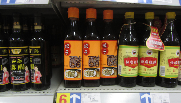 さて、ここまでいろいろ食べて思ったのだが、包子も餃子も、それ自体の味ももちろん重要なのだが、実はそれ以上にポイントになるのが、タレだ、ということが分かってきた。店によって味が違うのは、このタレによる違いが大きいからだ。カルフールに行って、餃子の食材コーナーを覗いてみたところ・・・ビックリするくらいいろんな種類の餃子用の黒酢?が置いてあった。なるほど、これだけいろいろあるのか・・・逆に言うと、選ぶのが大変だ。究極の餃子とは、このたくさんのタレの中から、どれを選ぶかってことにもなるのだから。