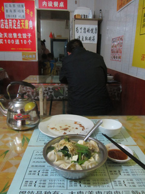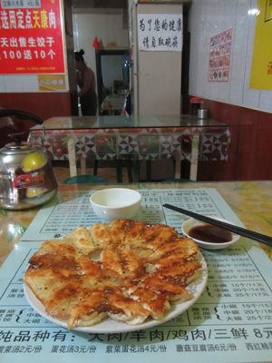 あらかじめチケットを購入しておいたバスは、夕刻から出発ということで、今日の昼飯が今回の中国での最後の餃子となる。水餃子にしようか、焼き餃子にしようか・・・などと悩むのはバカ。両方食べればいいんじゃん。ということで、両方食べた。あ~、相変わらず激ウマだ。