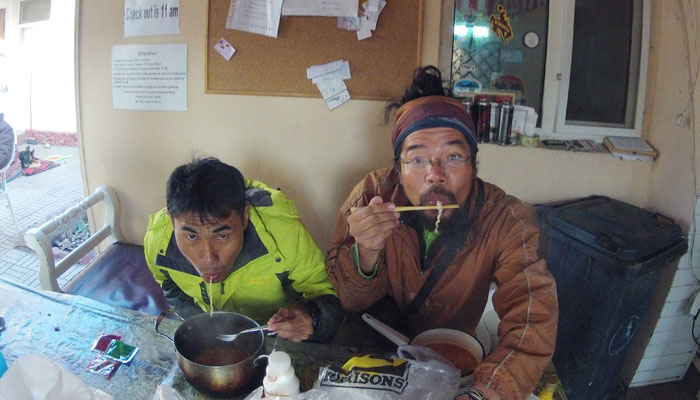 ビシュケクのサクラゲストハウスに来たのは、実は、会いたい人が居たから。それは、ウズベキスタン&タジキスタンで一緒に走ったマレーシア人チャリダーのホワンくん。タジキスタンの後、キルギスをひたすら走っていたホワンくんがようやくビシュケクに到着したってことを、オイラがアルマティに居た時に聞きまして。ちょうどこれからビシュケクに行くから待っててよ、ということで、会う約束をしていたんですわ。