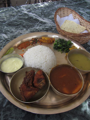 昨日念願のモモを食べれたので、ネパールで一番やりたいことは達成してしまったのですが・・・実は、ネパールでやりたいと思っていたことがもう一つありまして。それは<ダル・バート>なるネパール流カレー定食を食べること。・・・って、食べることばかりやんか!と突っ込まれるかもしれませんが、ええその通り。だってココから先は、食べ物が美味い地域ばかり。食べることが大好きなオイラとしては、食べ物主体にならざるをえないっしょ。