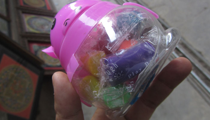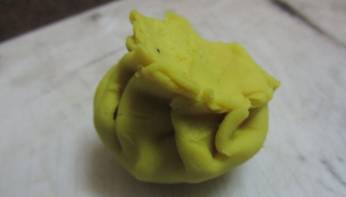 さて、せっかく習った包み方。復習しないと忘れちゃいますからな。宿に戻って練習すべく、粘土を買ってきた。そして、部屋の中で、ひたすら餃子の包み方練習。