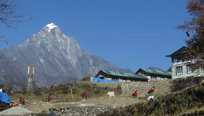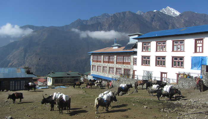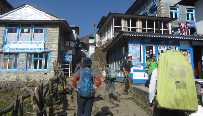 まぁ、なんとか無事、ルクラ空港に到着。濃霧で飛べなかったというのは嘘のように晴れ渡っていた。ここで、チャコさんたちが頼んでいるガイドのラマさんたちと合流。さらに、石澤夫婦の知り合いという旅人オオガネさんとも合流した。結構な大所帯だが、たまにはこういうのも面白い。