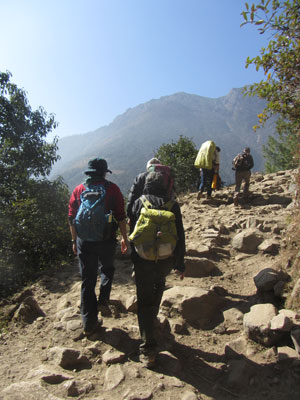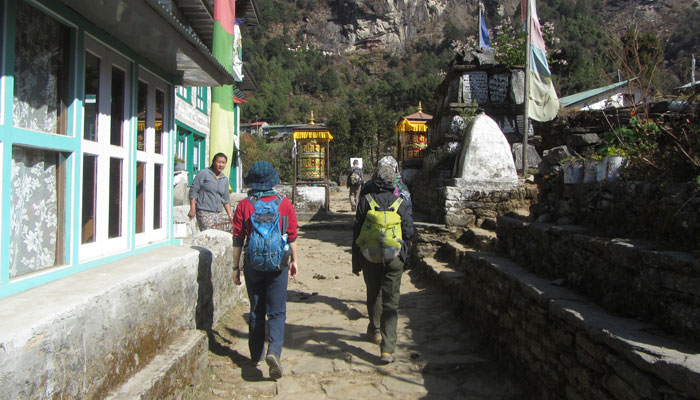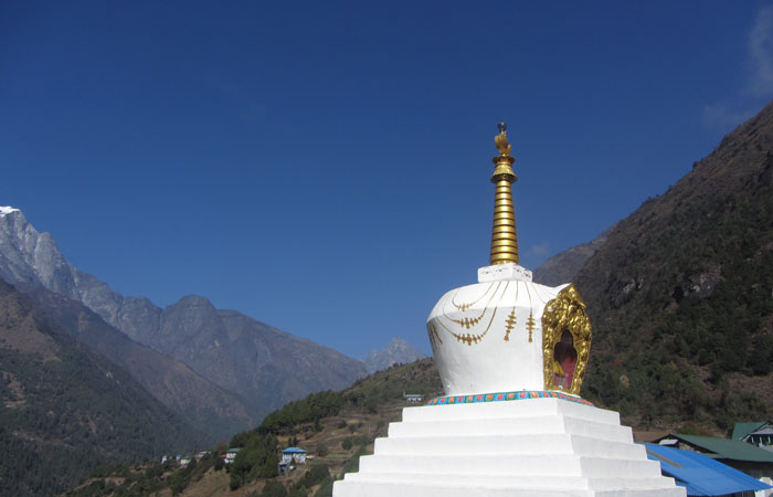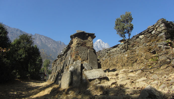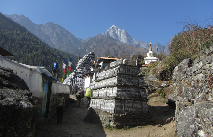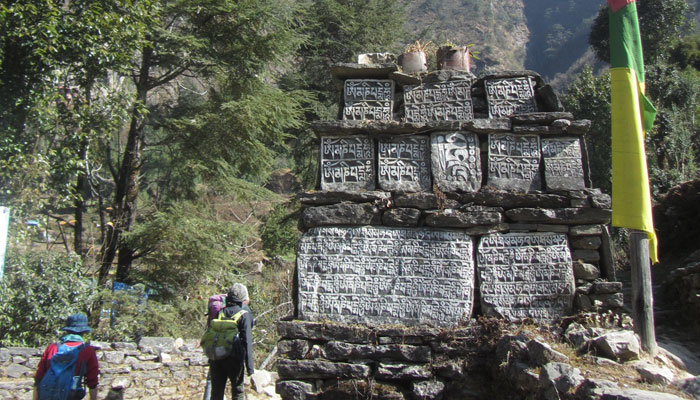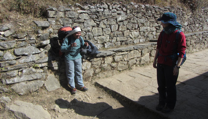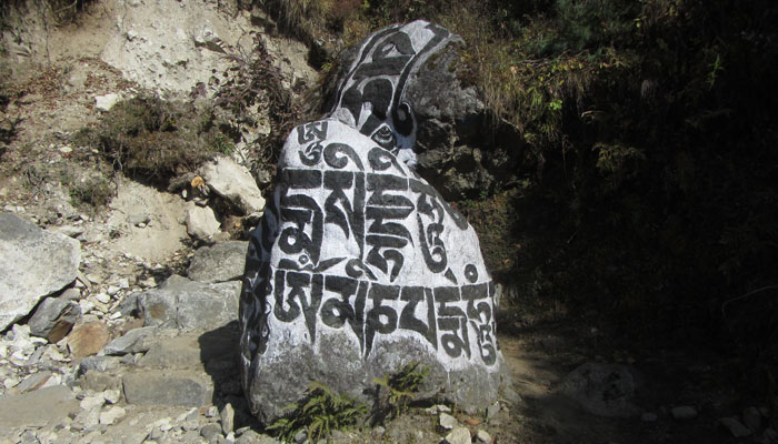 昼飯を食べて、出発。さぁ、トレッキング本番だ。チベット仏教の雰囲気を感じさせるものがあちこちにある。天気はいいし、空気が澄んでいて気持ちがいい。